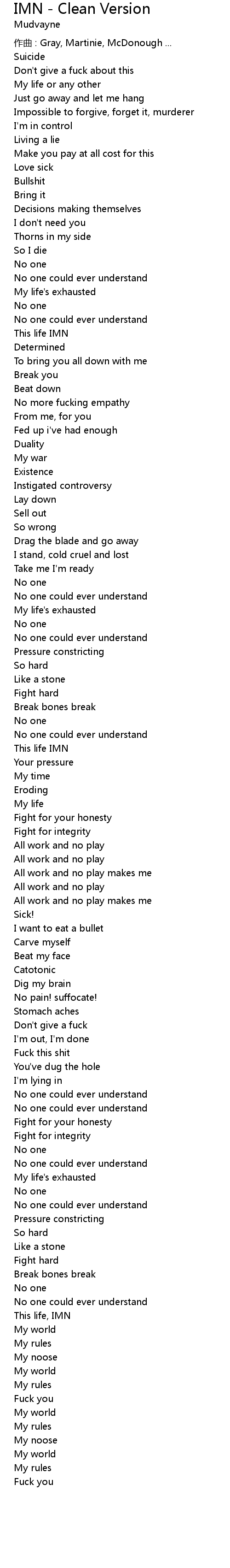 | Song | IMN - Clean Version |