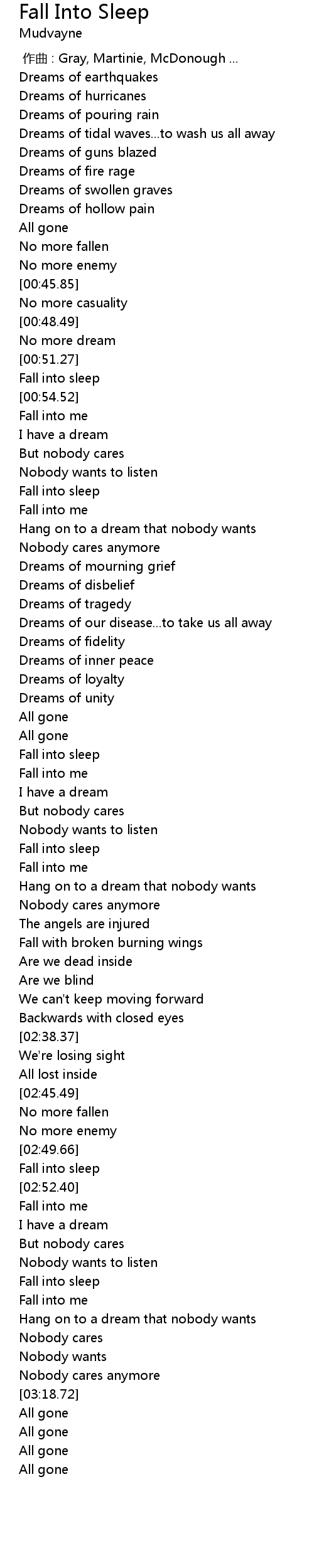 | [00:23.03] | Dreams of tidal waves... to wash us all away |