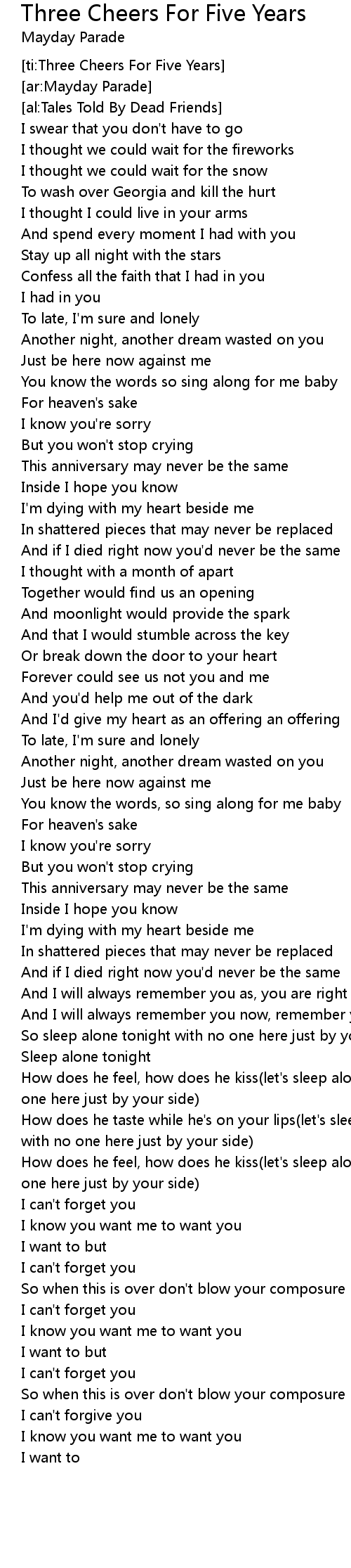 Three Cheers For Five Years Lyrics