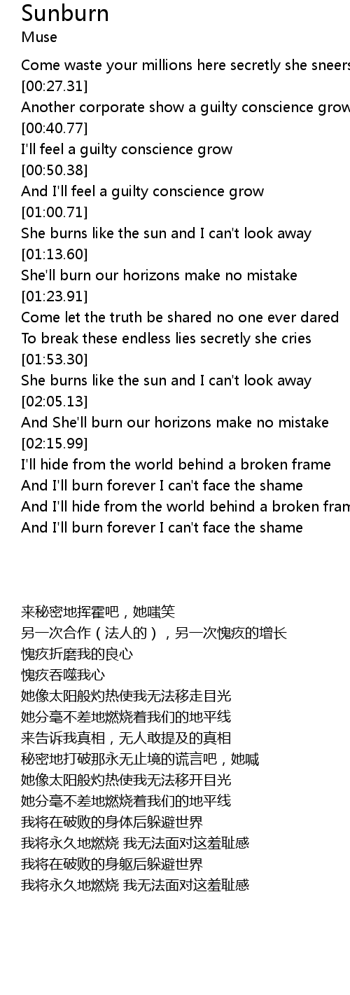 | [01:04.05] | She burns like the sun and I can't look away |