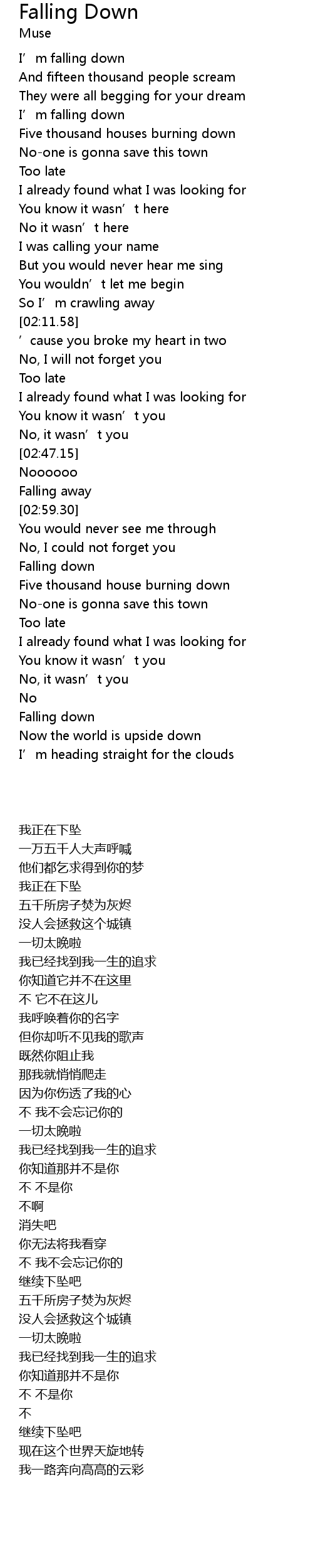 | [03:17.81] | Falling down |