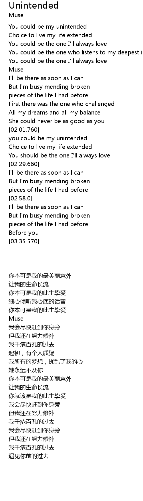 | [00:14.450] | You could be my unintended |