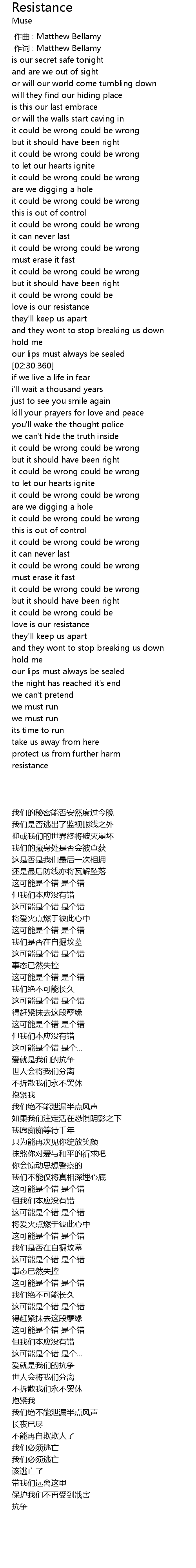 | [00:01.00] | 作词 : Matthew Bellamy |