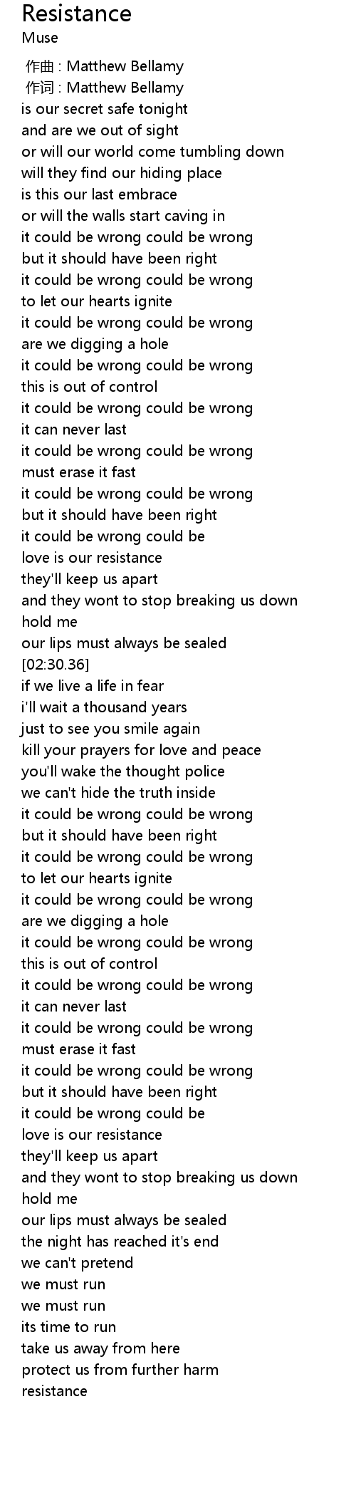 | [00:01.00] | 作词 : Matthew Bellamy |