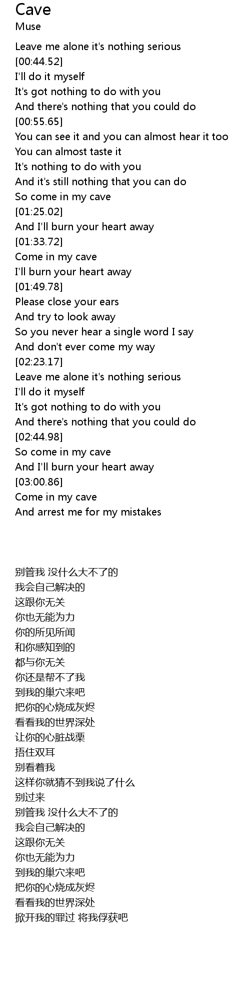 | [03:01.73] | Come in my cave |