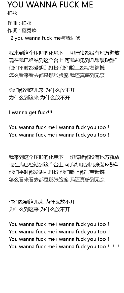 | 2. you wanna fuck me yǔ wǒ tóng zào | |