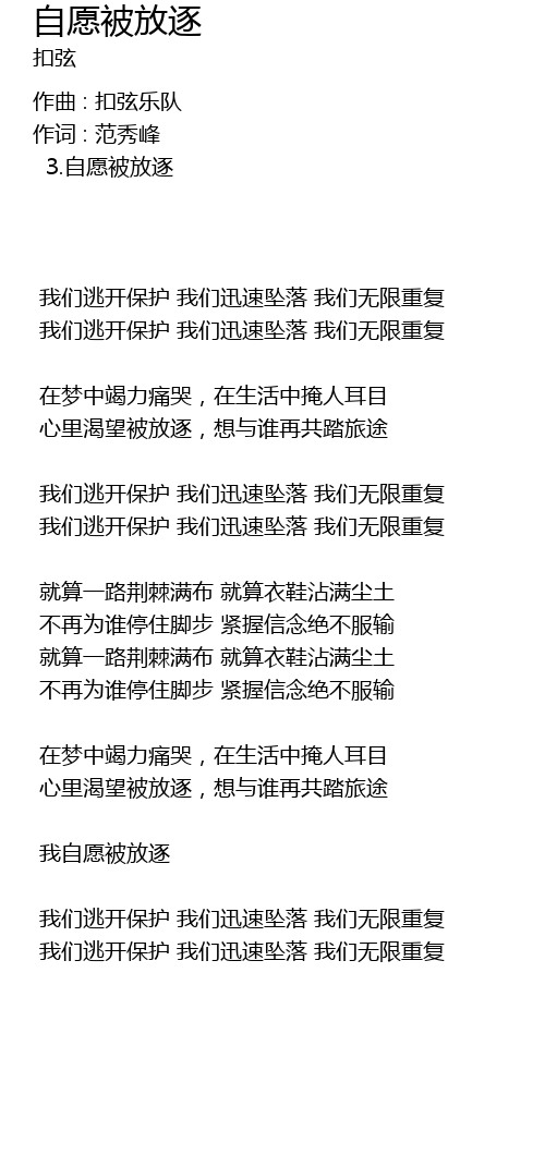 | 我们逃开保护 我们迅速坠落 我们无限重复 |