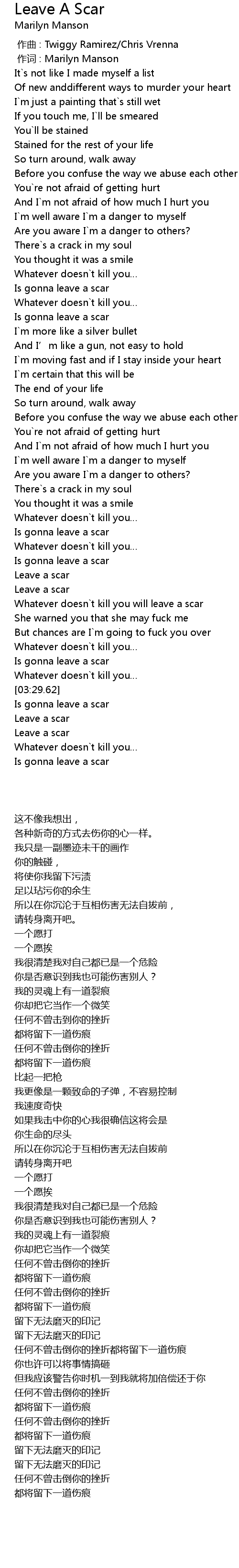| [02:52.30] | Whatever doesn t kill you will leave a scar |