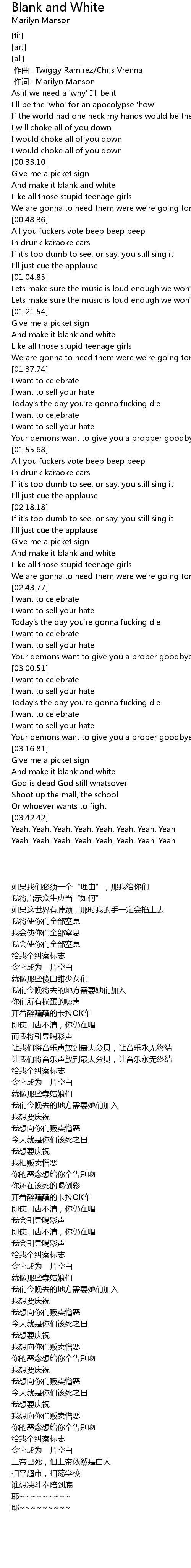 | [00:01.00] | zuo ci : Marilyn Manson |