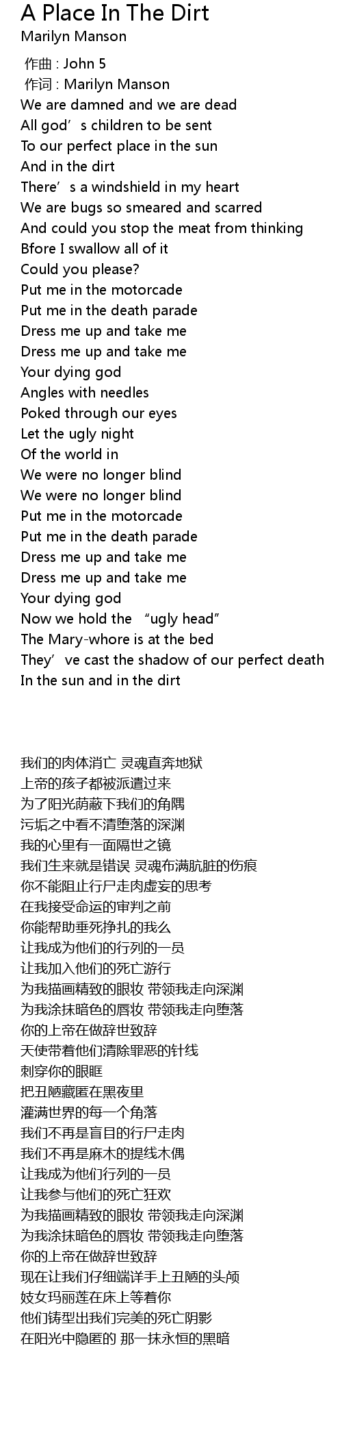 | [00:01.00] | zuò cí : Marilyn Manson |