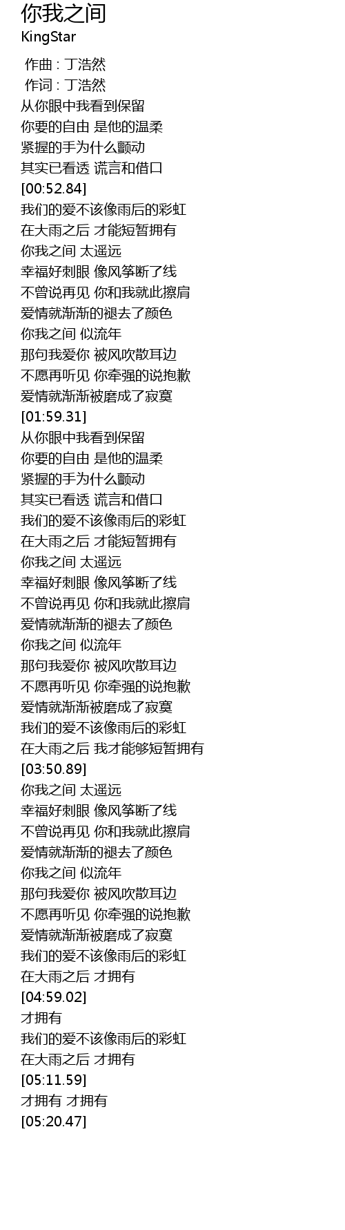 | [05:08.17] | zài dà yǔ zhī hòu cái yōng yǒu |