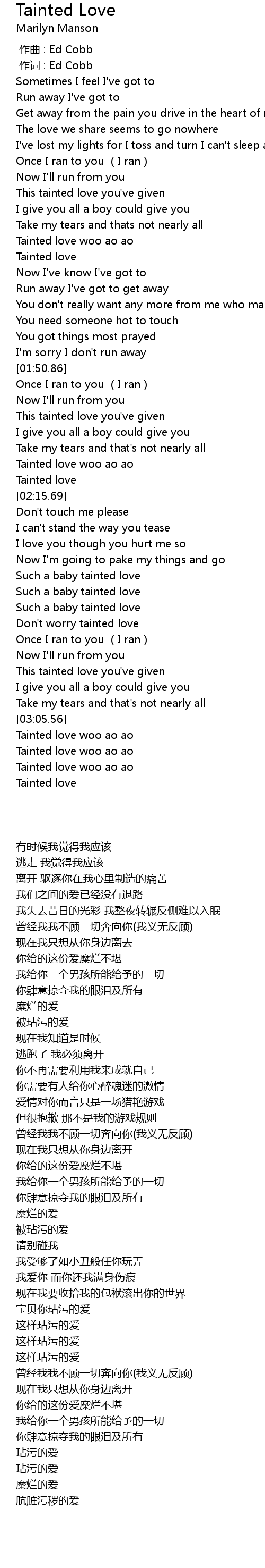 | [02:09.50] | Tainted love woo ao ao |