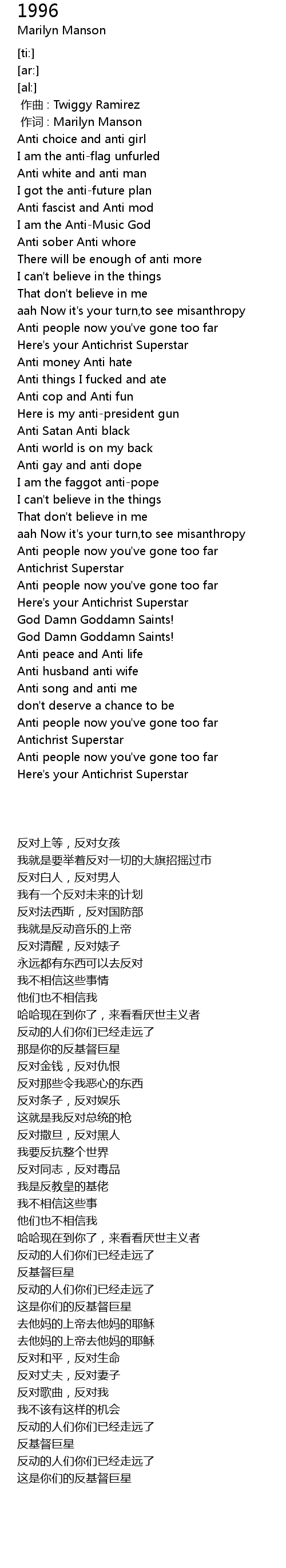 | [02:28.40] | Here' s your Antichrist Superstar |