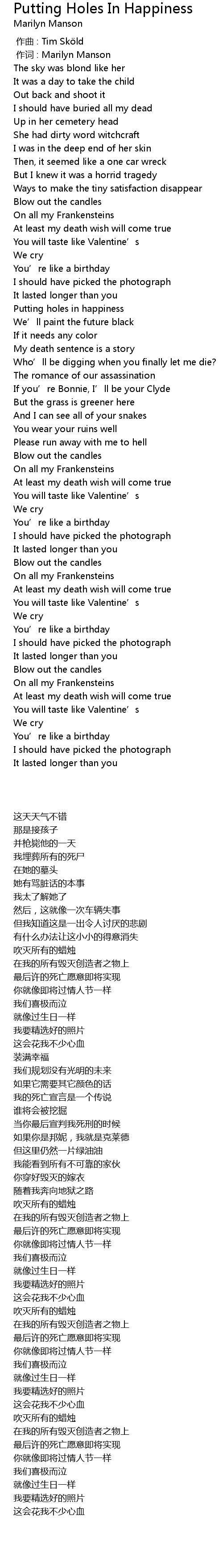 | [00:01.00] | zuò cí : Marilyn Manson |