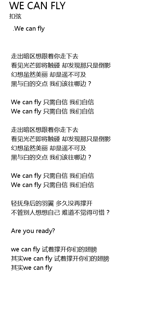 | qí shí we can fly shì zhe chēng kāi nǐ men de chì bǎng | |