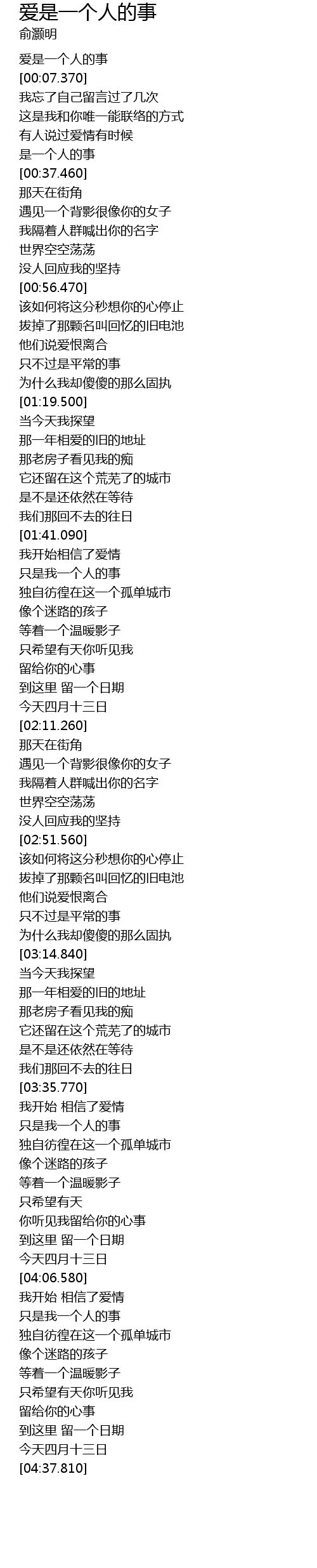 | [04:10.220] | zhǐ shì wǒ yí ge rén de shì |