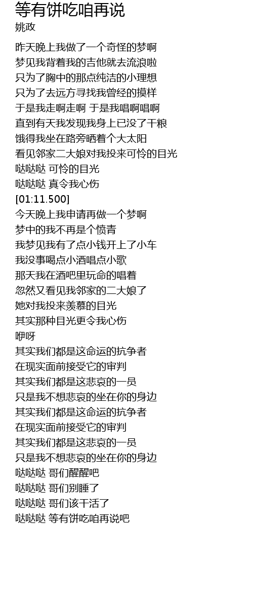 | [01:39.660] | 我梦见我有了点小钱开上了小车 |