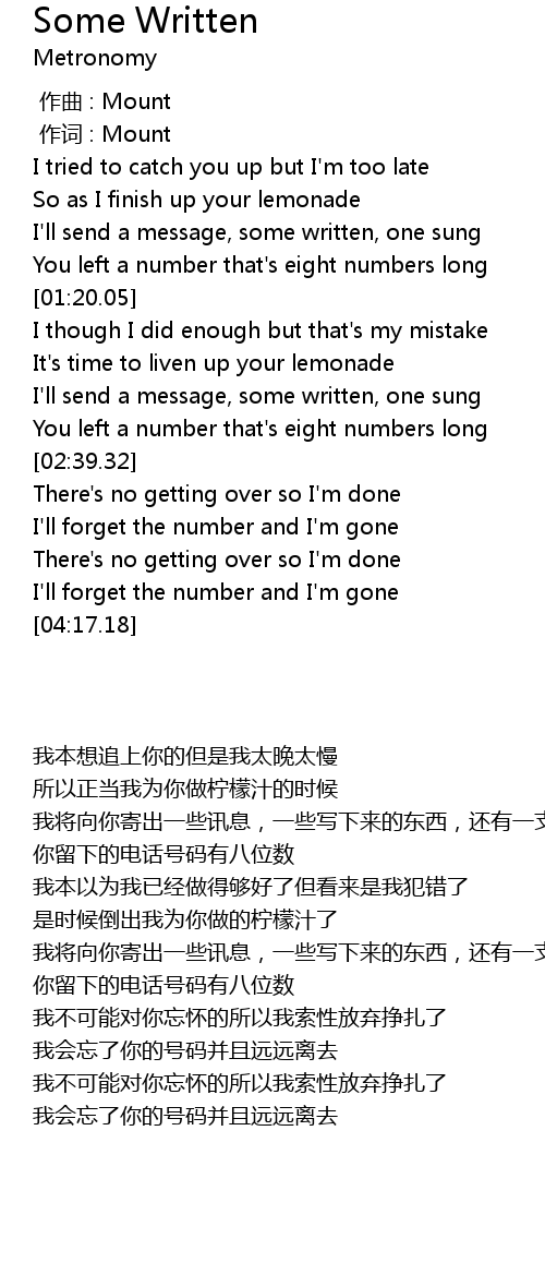 | [02:20.19] | I'll send a message, some written, one sung |