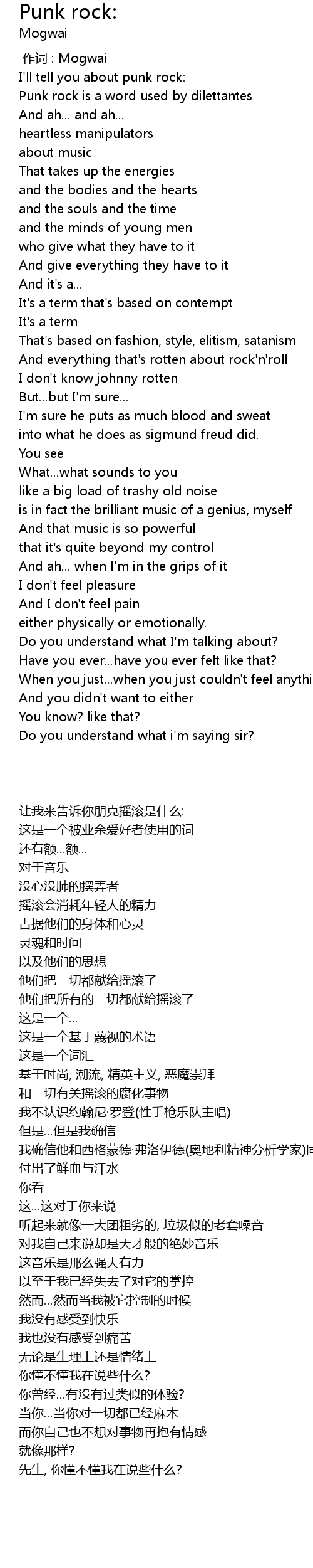 | [00:09.58] | I'll tell you about punk rock: |