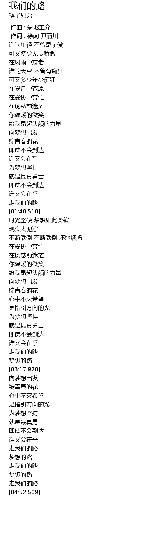 | [01:52.760] | 时光坚硬 梦想如此柔软 |