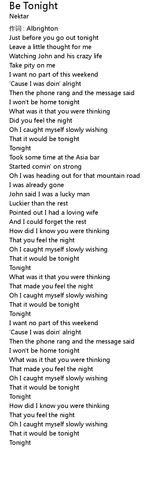 | I won' t be home tonight | |
