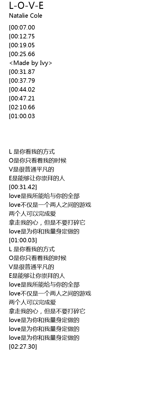 [02:16.85][02:10.66][02:04.67][00:50.39] Love was made for me and you