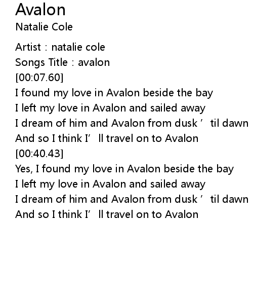 | [00:08.98] | I found my love in Avalon beside the bay |