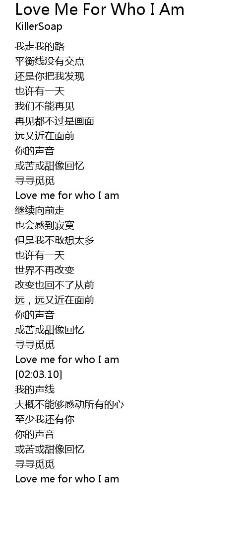 | [02:57.59] | Love me for who I am |