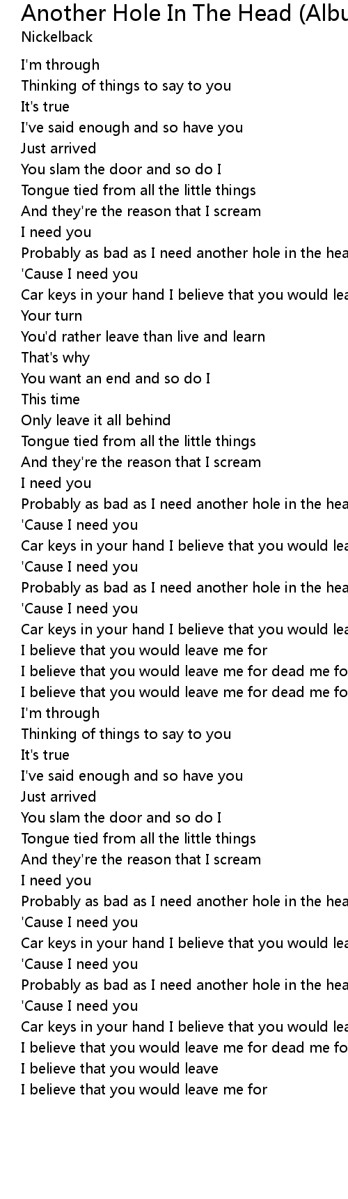 Car keys in your hand I believe that you would leave me for dead |