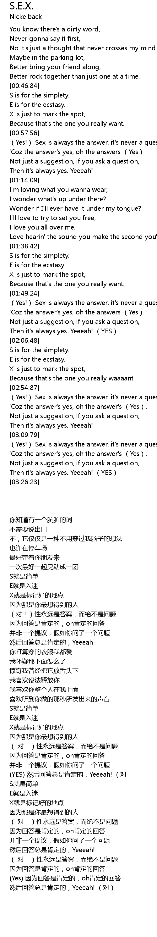| [02:55.79] | (Yes!) Sex is always the answer, it's never a question, |