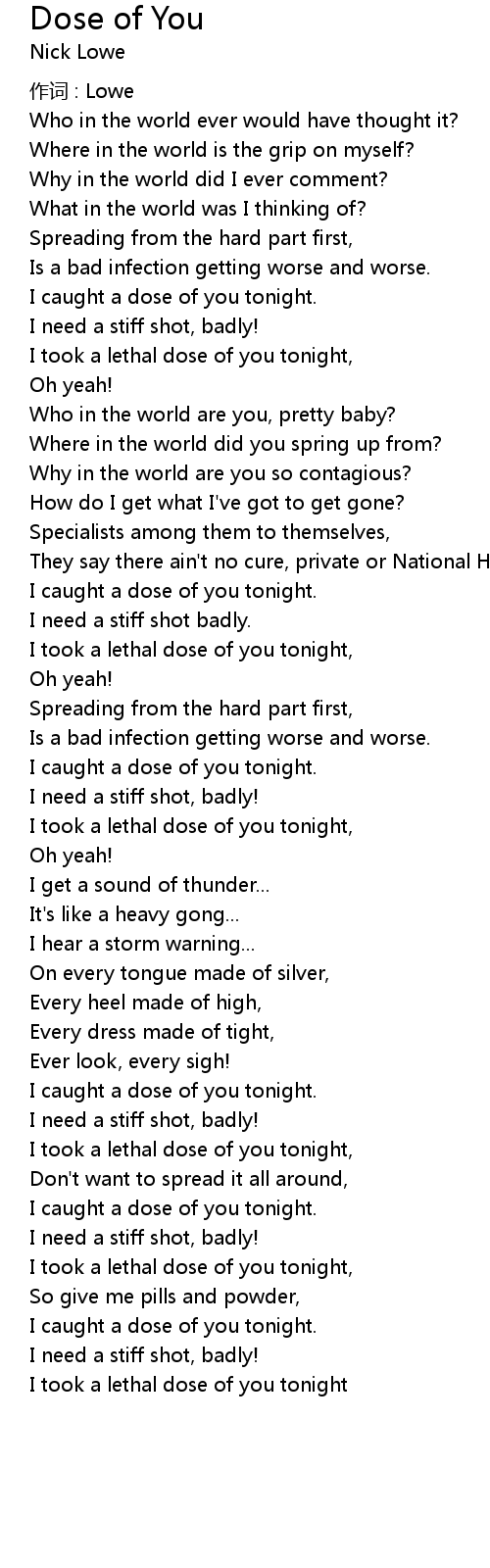 | I took a lethal dose of you tonight, | |