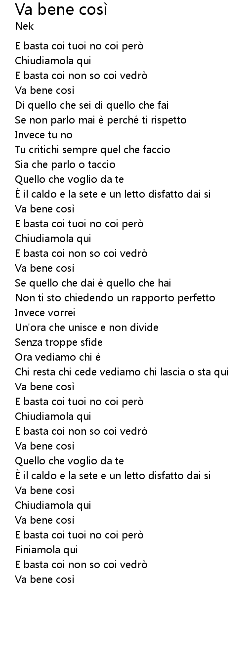 | Song | Va bene così |