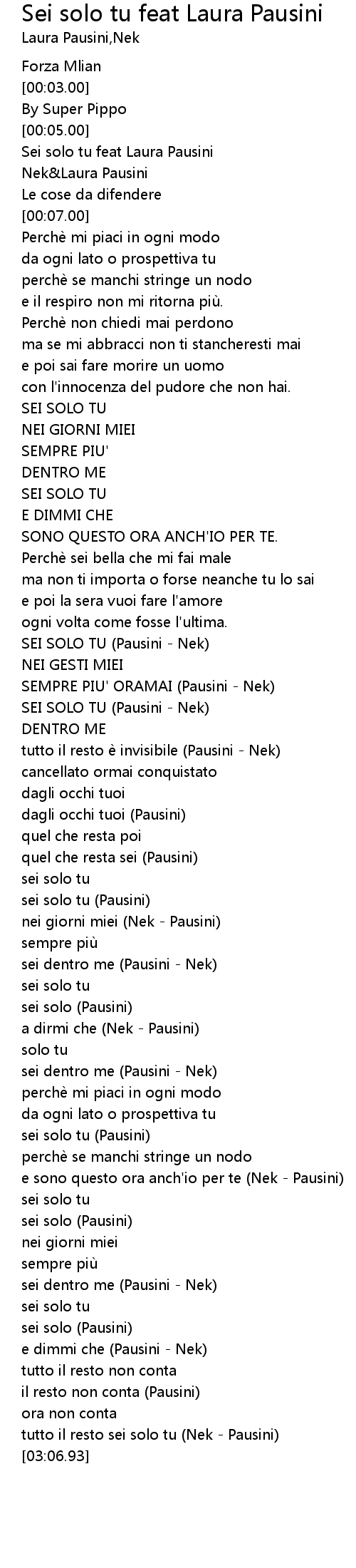 | [00:05.30] | Sei solo tu feat Laura Pausini |