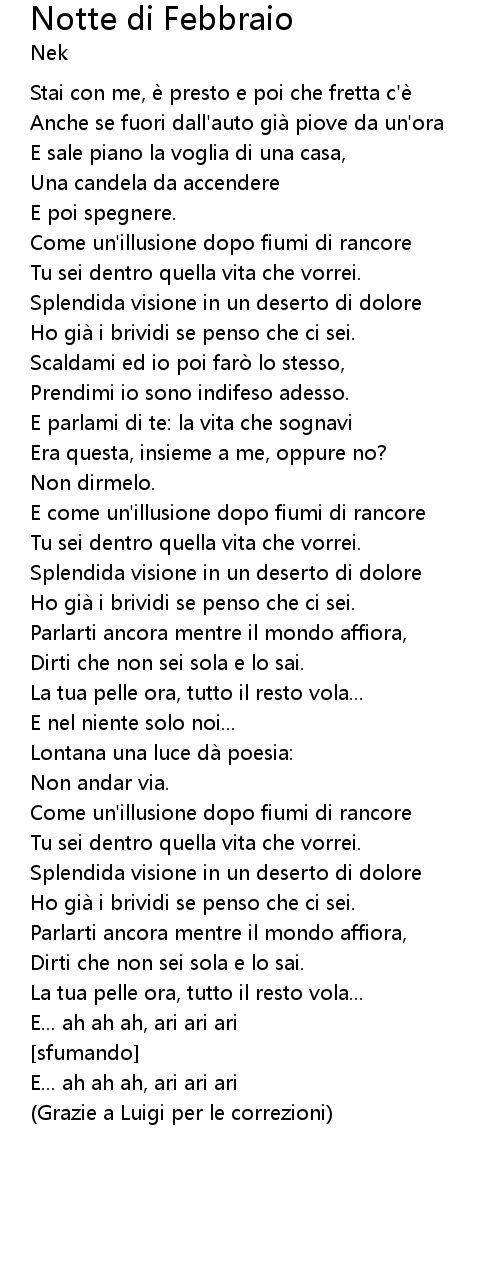 | Song | Notte di Febbraio |
