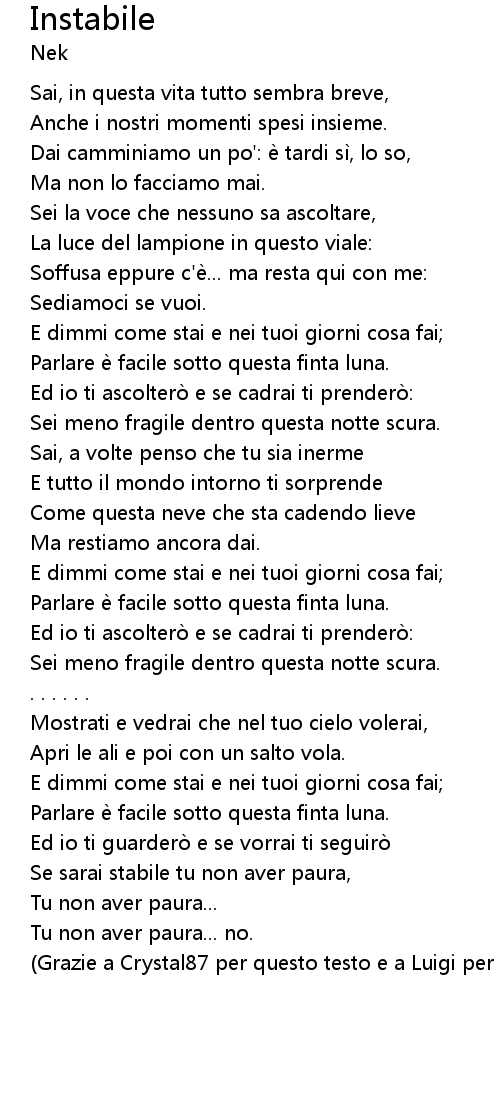 | E dimmi come stai e nei tuoi giorni cosa fai | |