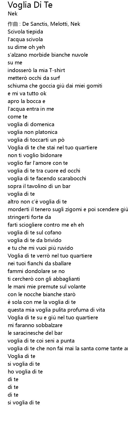 | voglia di te che non fai mai la santa come tante amiche che hai | |
