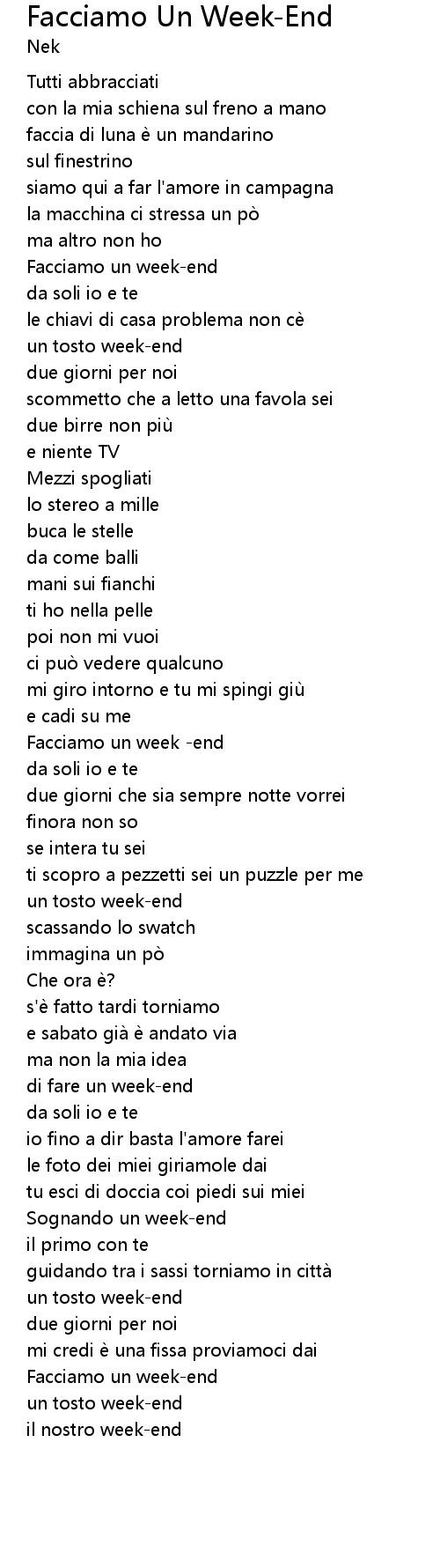 | Song | Facciamo Un Week-End |