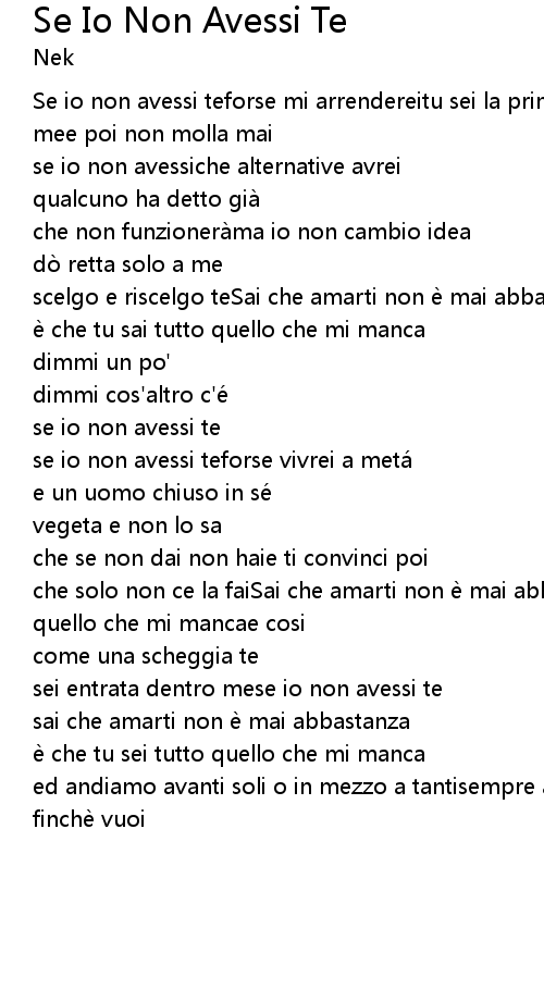 | Se io non avessi teforse mi arrendereitu sei la prima chefa una viaggio dentro mee poi non molla mai | |