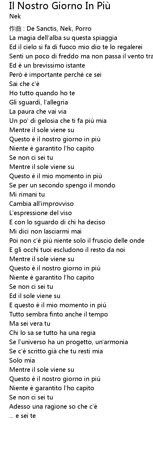 | zuò qǔ : De Sanctis, Nek, Porro | |