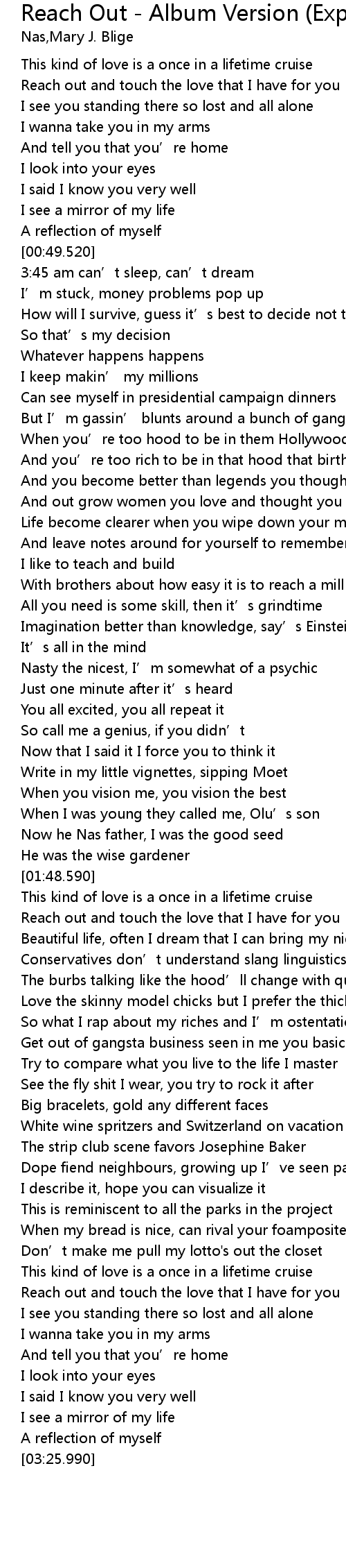 | [02:53.610] | Reach out and touch the love that I have for you |