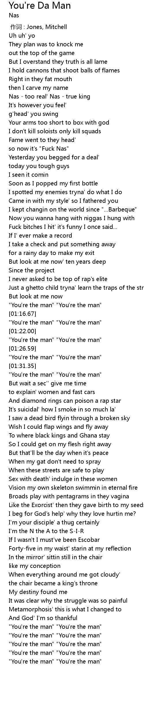 | [01:11.60] | "You're the man" "You're the man" |