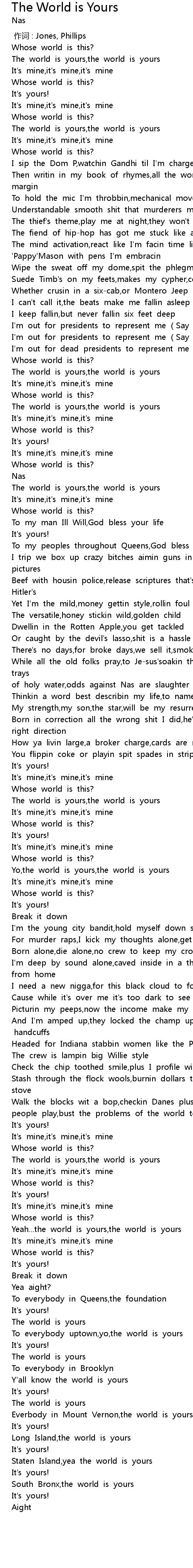 | [02:29.71] | Yo, the world is yours, the world is yours |