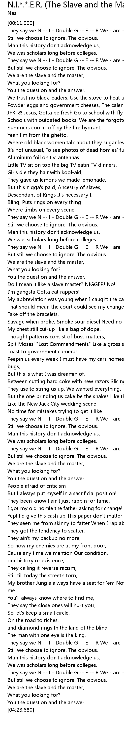 | [02:42.850] | They say we N -- I - Double G -- E -- R We - are - much more, |