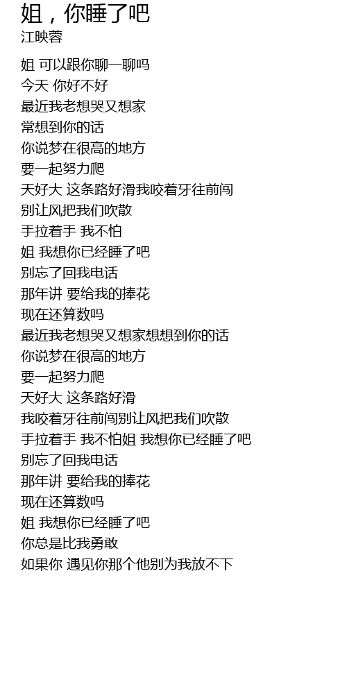 | shǒu lā zhuó shǒu wǒ bù pà jiě wǒ xiǎng nǐ yǐ jīng shuì le ba | |