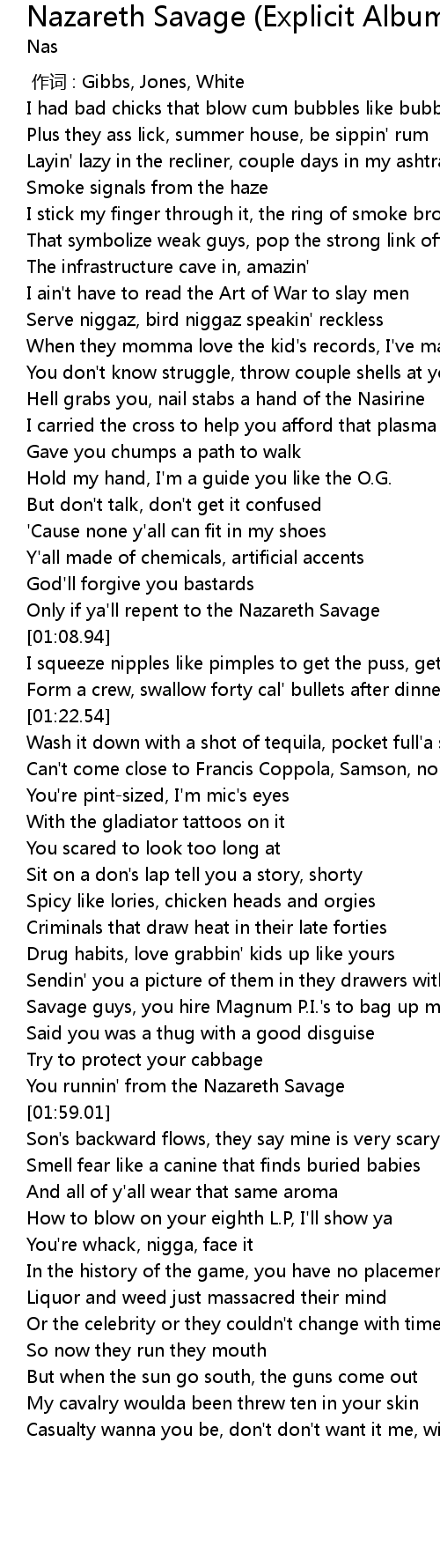 | [01:05.53] | Only if ya' ll repent to the Nazareth Savage |
