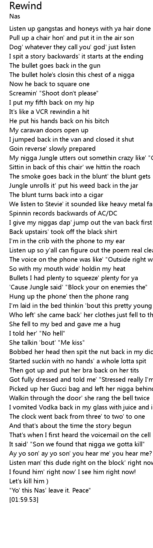 | [00:09.95] | I spit a story backwards' it starts at the ending |