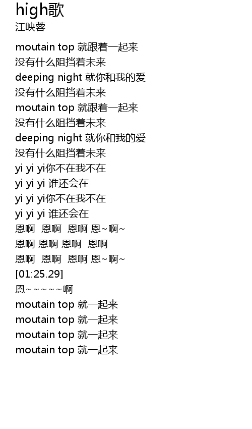 | [01:47.87] | moutain top jiù yì qǐ lái |