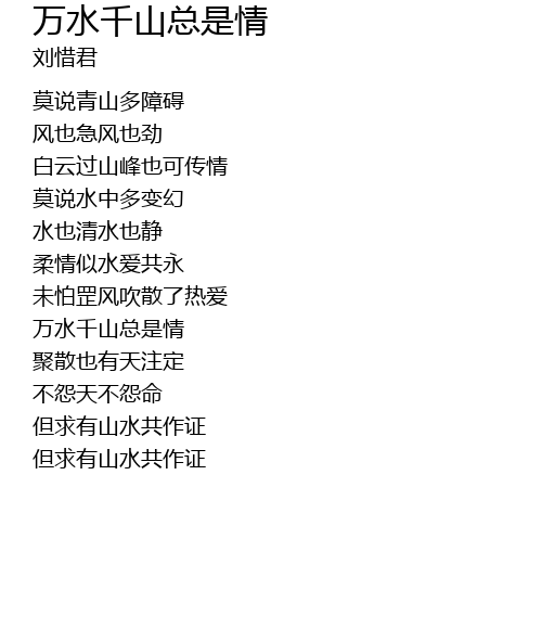 | [00:55.350] | wàn shuǐ qiān shān zǒng shì qíng |