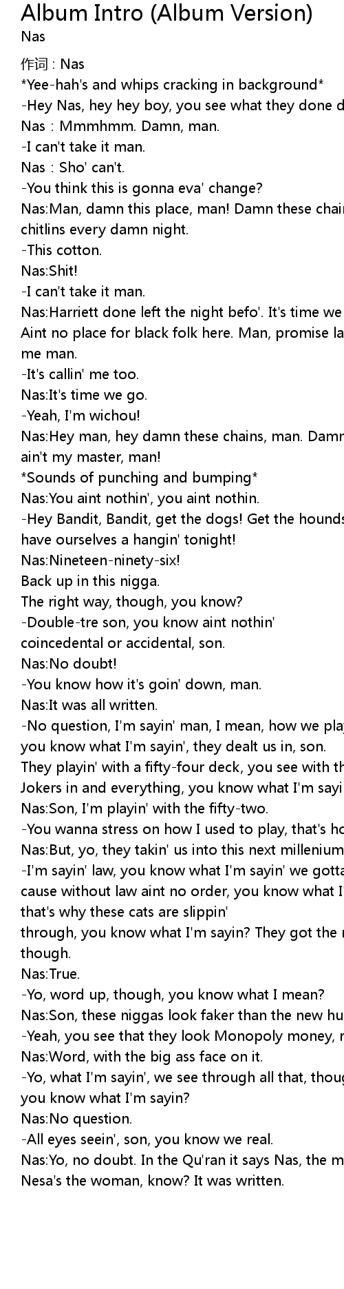 | 作词 : Nas | |