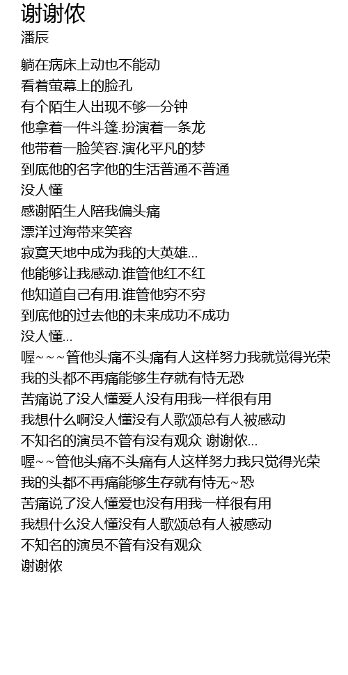 | [01:39.640] | 不知名的演员不管有没有观众 谢谢侬... |